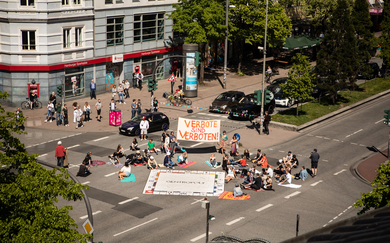 +++ ERKLÄRUNG VON ST. PAULI SELBER MACHEN ZU KIOSKEN, CORNERN UND EVENTS AUF ST. PAULI +++ St. Paulianer*innen haben heute auf der Reeperbahn Platz genommen, um zu zeigen: Der Kiez bleibt frei und unregulierbar. Alkoholverbote und billige Stimmungsmache gegen Kioske gehen gar nicht – sie dienen nur den Interessen derjenigen, die für die Eventisierung des Kiezes verantwortlich sind und sich nun über die Geister wundern, die sie riefen.